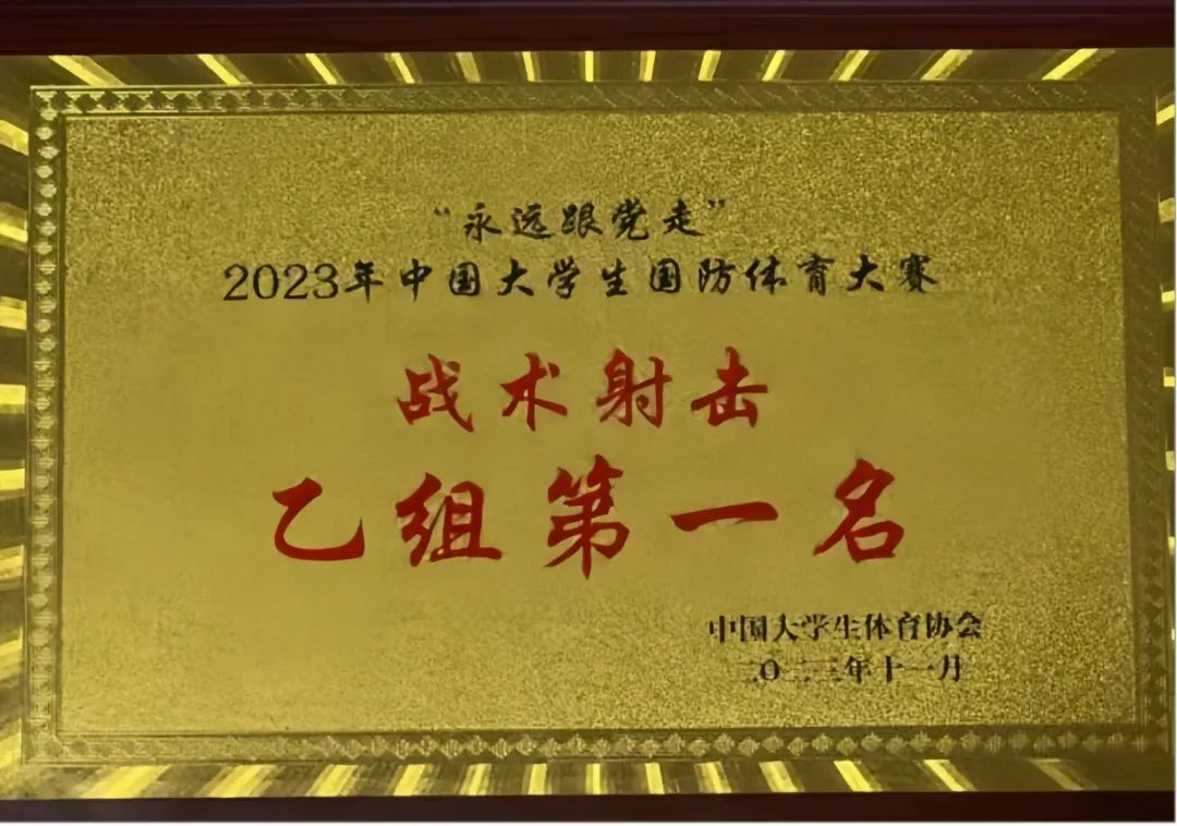 回溯既往征程,2023年中国大学生国旗护卫队展示赛(北方赛区)中,团队斩获升旗展示、队列动作双项第一及团体总分冠军;同年在中国大学生国防体育大赛中,beat365学子荣膺综合团体第二名,并包揽战术射击、武装越野双项冠军。