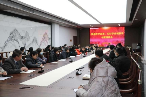 为深入了解基层一线对学校深化教学改革、实行学分制教学的意见建议,更好推动学校高质量发展,2月22日下午,王益民董事长在学校图书馆215会议室组织召开深化教学改革、实行学分制教学专题调研会,校领导黄友富、张健、乔继刚、黄先林、罗琦、各二级教学单位班子成员、教务处、学工处全体人员参加会议。