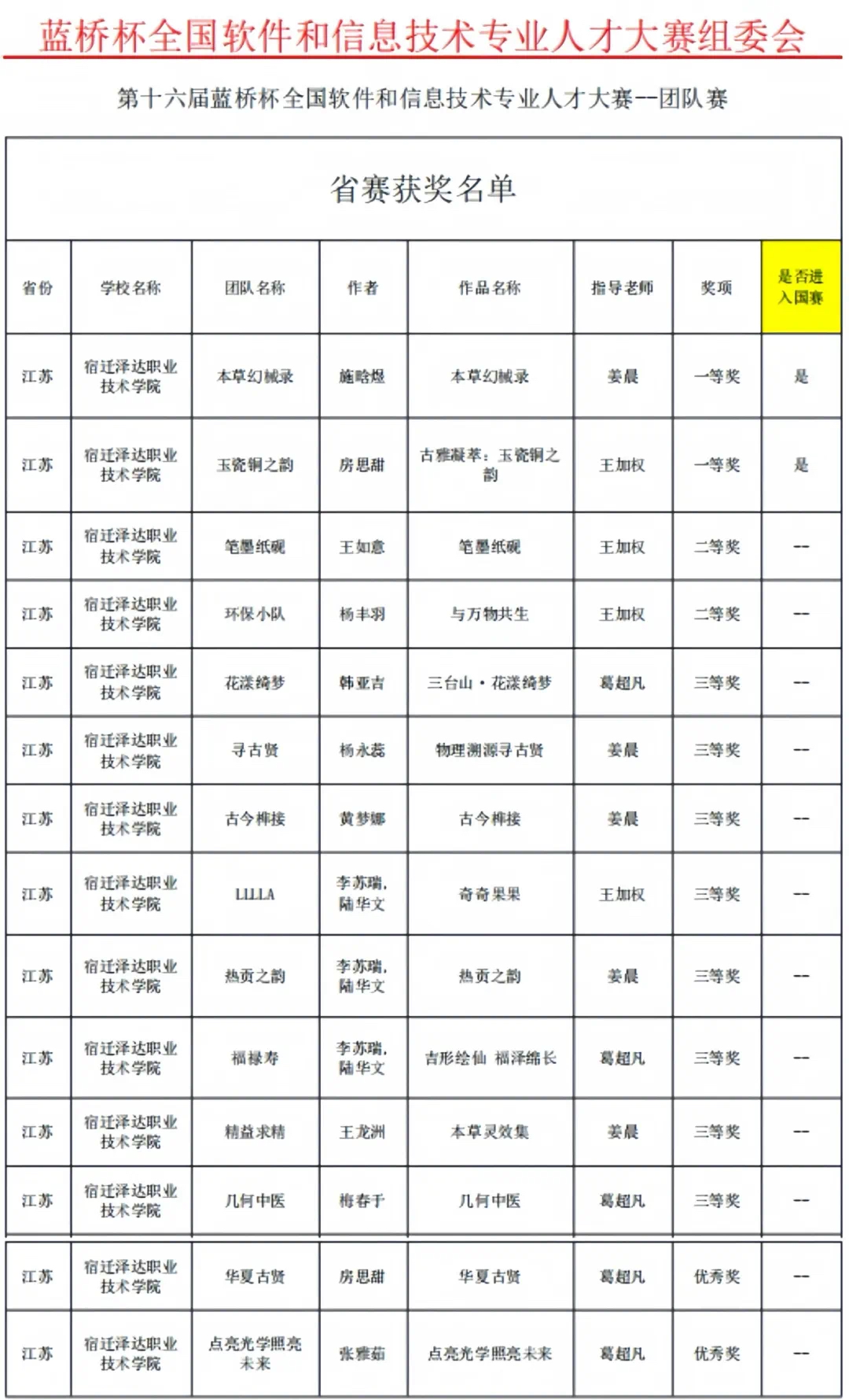 近日,第十六届“蓝桥杯”全国软件和信息技术专业人才大赛团队赛与个人赛省赛成绩揭晓。beat365学子在竞赛中表现优异,斩获团队赛一等奖2项、二等奖2项、三等奖9项、优秀奖2项;斩获个人赛一等奖2项、二等奖3项、三等奖10项,获奖总数创历史新高,其中团队赛一等奖施晗煜、房思甜晋级全国总决赛,个人赛中软件赛一等奖杨政睿、电子赛一等奖杨磊成功晋级全国总决赛。
