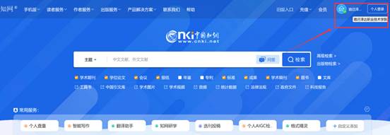 电脑需连接校园网,打开中国知网官网后会自动识别IP地址,自动登录。