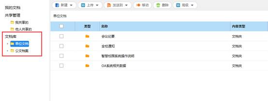 4. 点击屏幕左侧单位文档/公文档案,进入文档库。