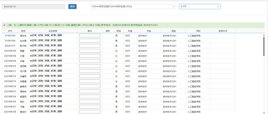 5.出现学生信息后可以在点名类别中选择学生的签到状态,并填写备注