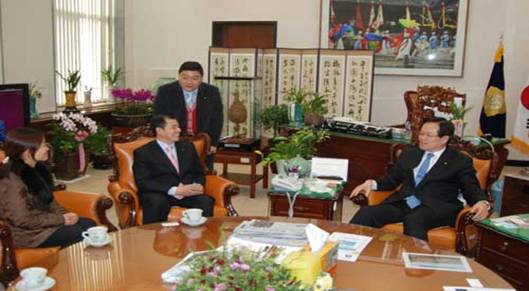 韩国国会副议长郑义和其办公室接见王益民董事长,并对董事长获得韩国龙仁大学教育学名誉博士表示祝贺。