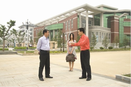 胡雨泽一行在董事长王益民的陪同下考察了学院的校园环境,了解学院的办学情况。在参观过程中,双方就我院的文化建设进行讨论交流。胡雨泽在称赞我院优美的校园环境的同时,还就我院如何进行校园文化建设提出建设性的方案,并对正在建设的高占祥书法广场提出了许多合理化建议。此外,他还计划从他的《中华行爱国诗词三百首》中精选99篇供学院的文化建设使用。