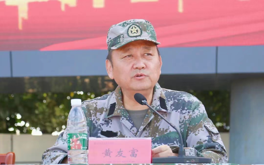 副校长黄友富作军训动员讲话。他首先代表学校党委、行政及全校师生员工向承担此次军训任务的武警宿迁支队官兵致以崇高的敬意和衷心的感谢!向长期以来关心支持学校国防教育事业的宿豫区人民武装部首长表示衷心的感谢!向做好此次军训保障服务工作的全体老师们表示衷心的谢意,并向以饱满的热情参加军训的全体新同学表示热烈的欢迎。