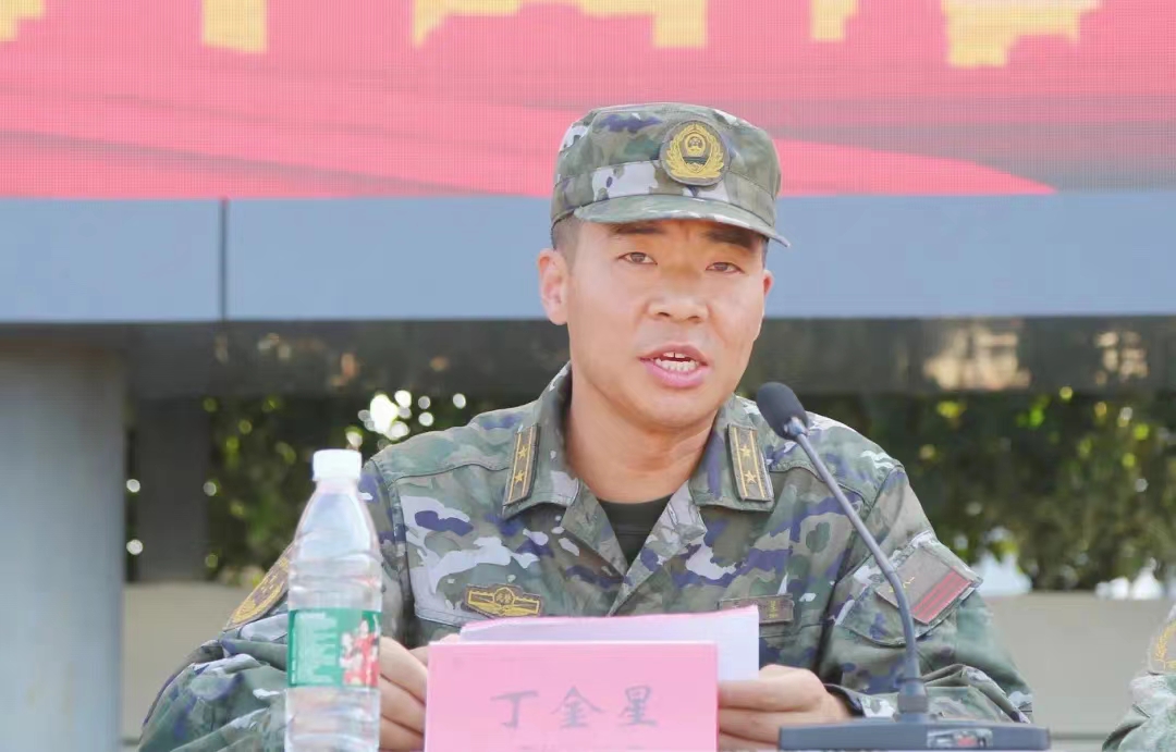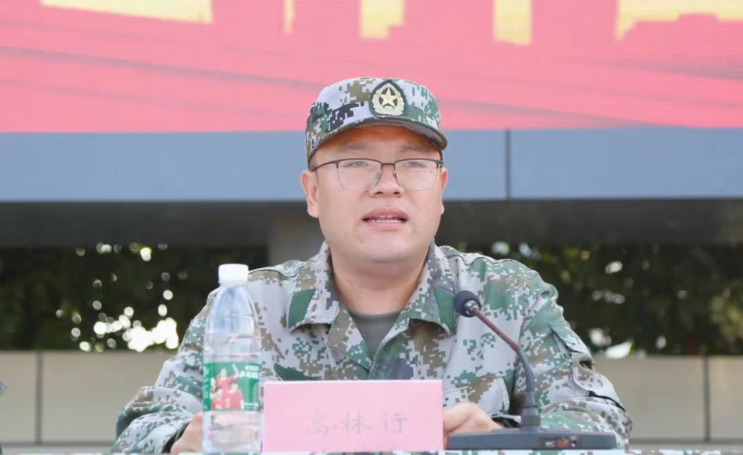 2024级新生军训团团长、武警宿迁支队政治工作处中校副主任丁金星发表讲话。他指出,军训是迈入大学生涯的起跑线,是成长成才的助推器。面对百年未有之大变局,军训提升的是军事素养,充盈的是民族武德,助力的是备战打赢,磨砺的是意志底气,锻造的是精神志气,锤炼的是作风骨气,能够点亮心灵、塑造灵魂,能够锤炼意志、培塑品格,能够熔炼血性、锻造阳刚。他希望各位同学迈出这一步、走稳这一步、夯实这一步,深耕厚植、行稳致远,必将对接下来的学习和生活起到非常积极的作用。最后,他预祝此次军训取得圆满成功!
