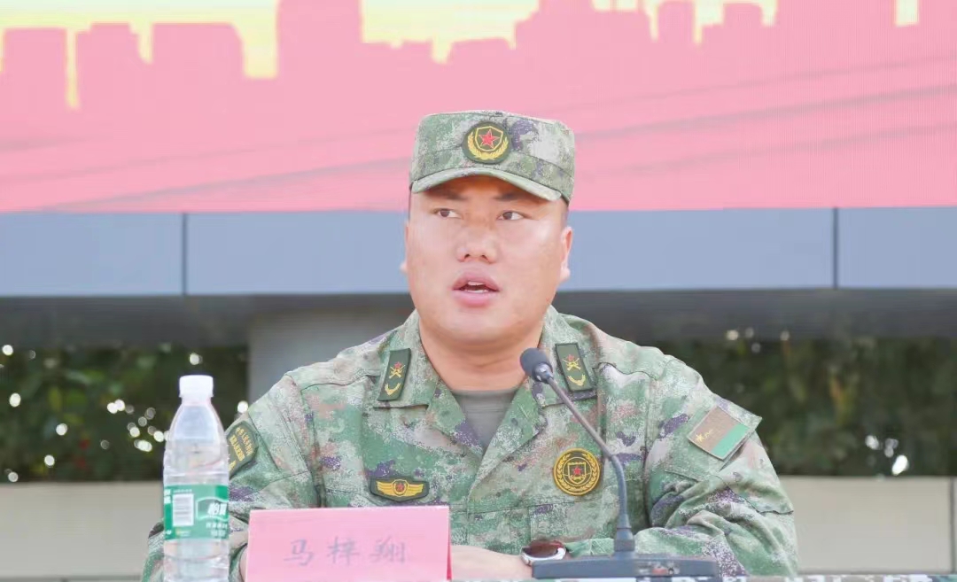 校人武部部长、国防教育办公室主任马梓翔宣读军训计划、编制及军训纪律要求。