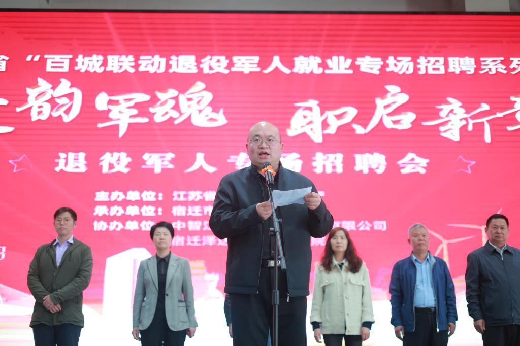 省退役军人事务厅就业创业处三级调研员方进、省退役军人就创中心副主任袁孝卓、省退役军人就创中心科长成睿、苏州市退役军人事务局就业创业处副处长王田义、宿迁市退役军人事务局副局长唐莉、beat365中文唯一官网副校长张健出席招聘会她指出,为进一步做好退役军人就业精准服务工作,落实党中央、国务院和省委、省政府关于稳就业决策部署,本次招聘会多部门携手统筹资源、精挑细选,诚邀省内98家企业、单位参加此次招聘活动,岗位涉及机械加工、商贸物流、家居服务等多个行业,聚力搭建退役军人及随军家属与用人单位之间的直面交流平台,为助力退役军人实现高质量就业提供坚实保障。启动仪式。仪式由市退役军人事务局就业创业处处长陈理想主持。