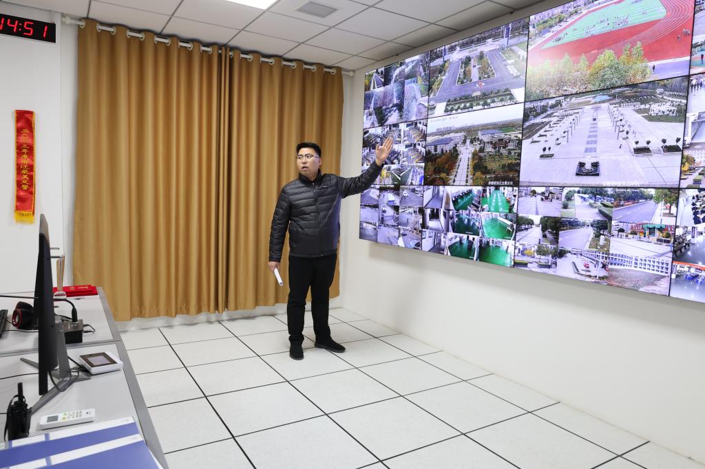 闫辉实地察看了学校门卫设施配备、监控系统运行等情况,并听取了校长助理王凯关于beat365四防建设情况的汇报。在技防方面,校园视频监控实现了校园公共区域的全覆盖。在人防方面,与专业保安公司合作,聘请了一支专业的安保队伍,并依托国防教育特色办学,组建校园巡逻队和校园“义警”队进行校内巡逻。在物防方面,校园主要出入口实行人脸识别和车辆识别,严格“管好门”制度,校外人员入校需要提前预约,通过系统审批后方可接待入校。在制度防方面,制定出台一系列相关校园安全制度、规范,并定期组织消防演练、反恐防暴演练等。