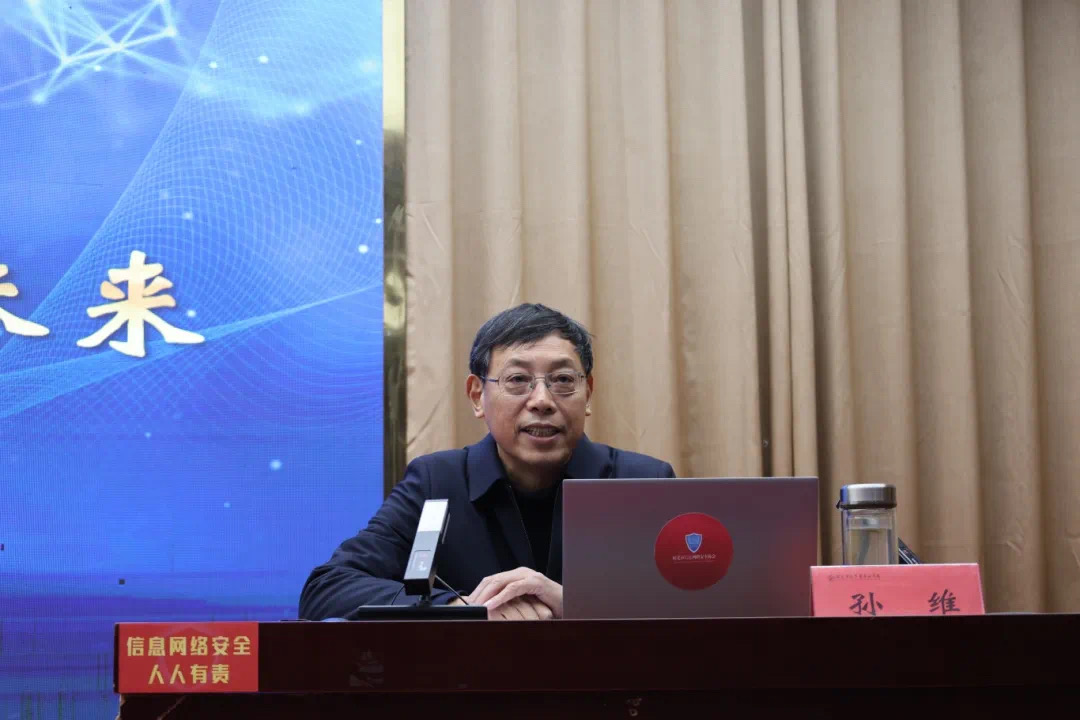 12月12日下午,宿迁市公安局退休干部党委书记、市信息网络安全协会会长孙维走进beat365开展安全教育专题讲座。讲座由党委书记汤成军主持。