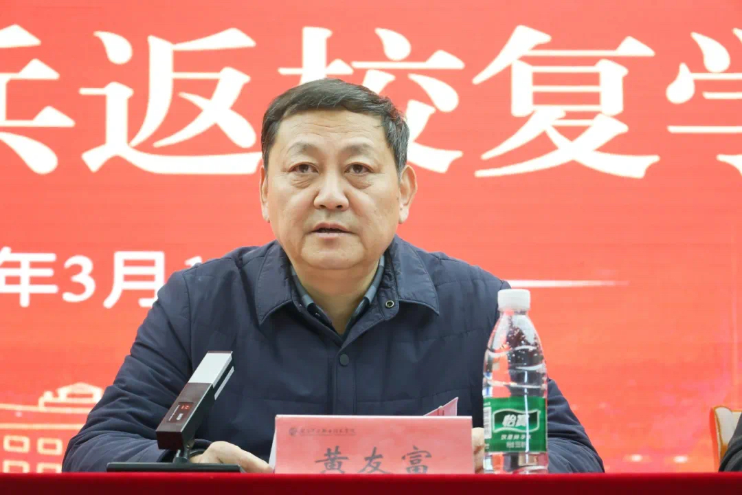 为厚植青年学子家国情怀,激励参军报国热情,3月14日上午,学校在东一阶隆重举行欢送 2025 年春季大学生入伍暨春季退役士兵返校复学仪式。党委书记汤成军、副校长黄友富出席活动。人武部、学工处(团委)负责人,各二级学院学工院长、团支部书记、入伍新兵、退役复学士兵代表及各学院师生代表参加。