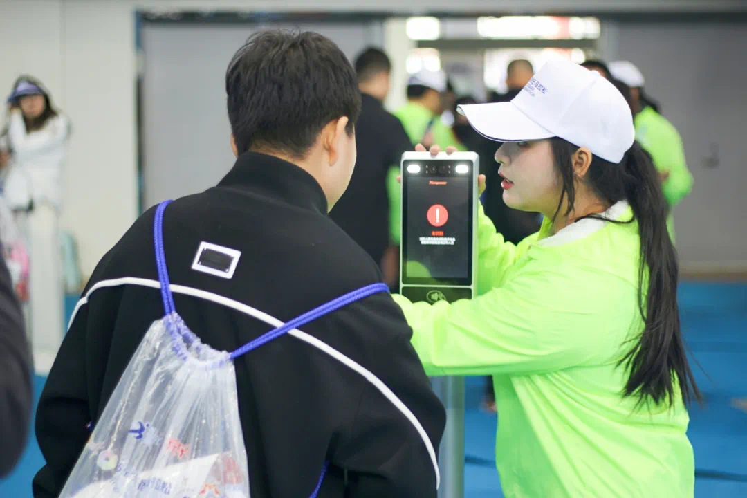 志愿者们根据岗位安排,各司其职,分布在选手报到服务的各个关键节点。选手报到服务工作下设包含外围指引、人脸识别、芯片检测等13个服务组别,志愿者们以高度的责任感和敬业的精神,确保了服务的精准与高效,通过热情引导、耐心讲解帮助选手快速地完成报到流程。