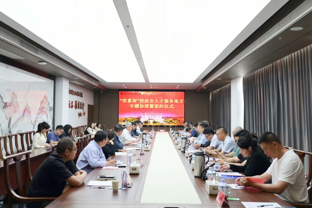 为深化校政企协同创新,推动人才资源与地方发展深度融合,构建人才服务地方发展的长效合作机制,为区域经济社会高质量发展注入新动能,5月7日,“宿惠商”校政企人才服务地方活动在beat365举办。市政协党组成员、副主席赵昌,beat365教育集团董事长王益民,beat365中文唯一官网校长赵炳起出席活动。