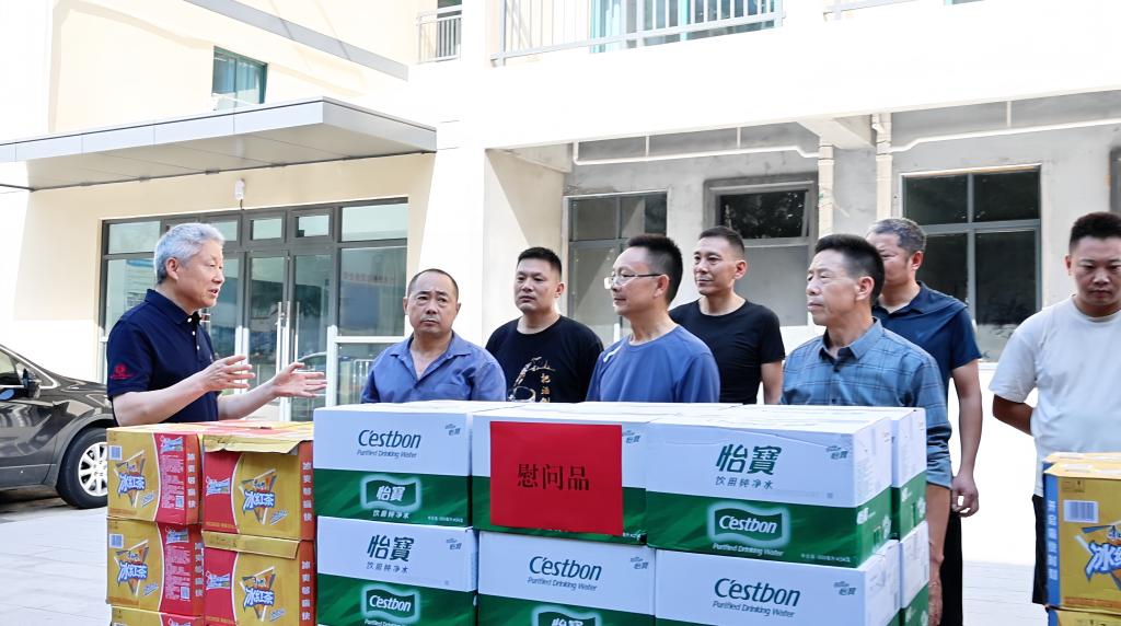在施工现场,赵炳起亲手为工人们送上防暑降温物资,代表学校向他们表示诚挚的感谢和崇高的敬意。他详细询问了工人们的工作和生活情况,反复叮嘱项目负责人务必科学安排户外高强度作业时段,避开极端高温,保障工人充分休息,并足量供应清凉饮品及必需的防暑药品,确保一线建设者的健康与安全。