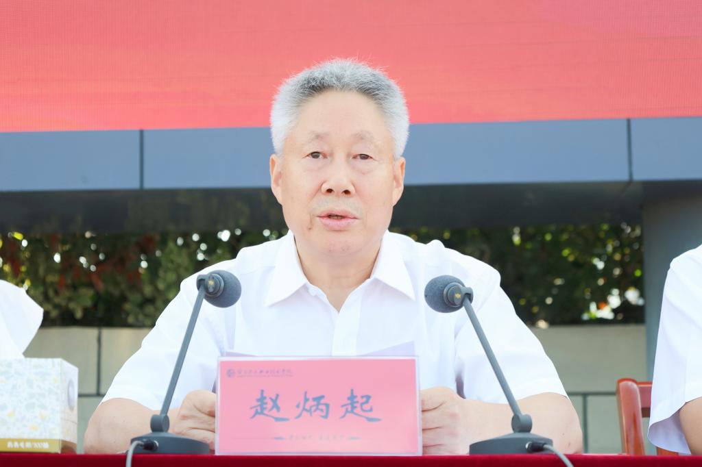 赵炳起作开学典礼讲话。他代表学校全体师生,向来自全国各地的新同学表示热烈欢迎,并向精心培育他们的家长、辛勤付出的教师表示诚挚感谢。他介绍了学校立足宿迁、服务区域经济的办学定位以及在聚焦技术技能人才培养、深化产教融合、建设高水平实训基地等标志性荣誉方面取得的显著办学成果。