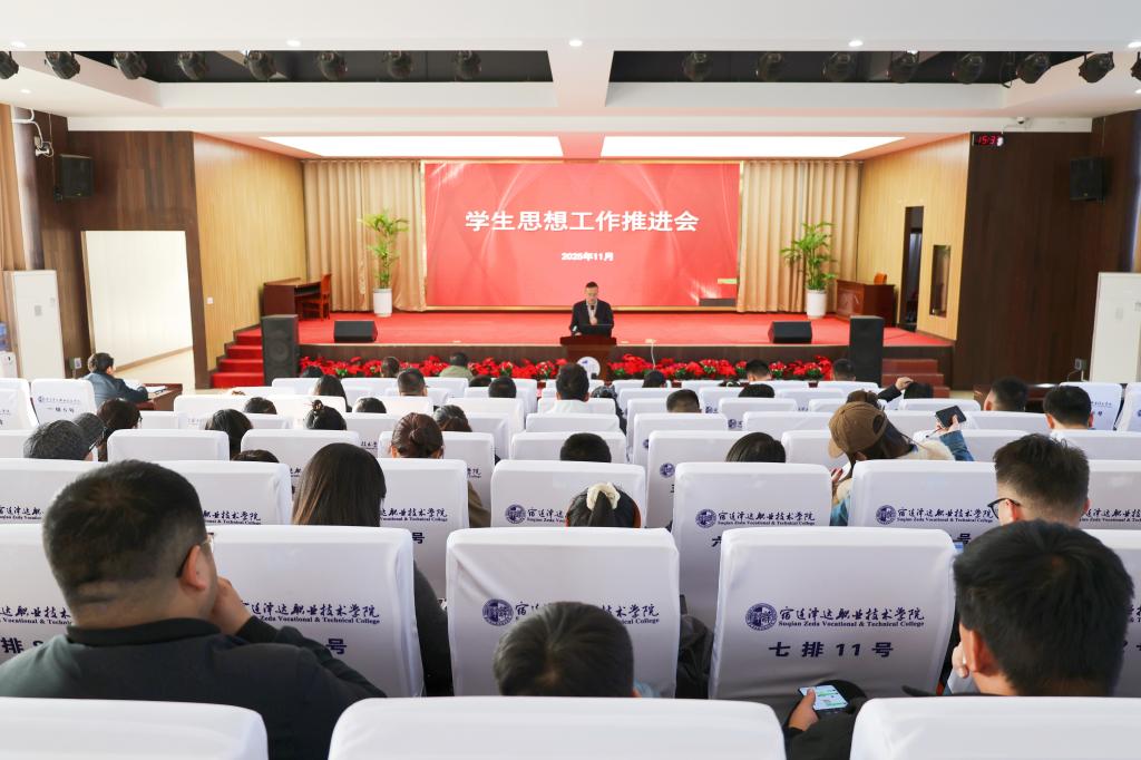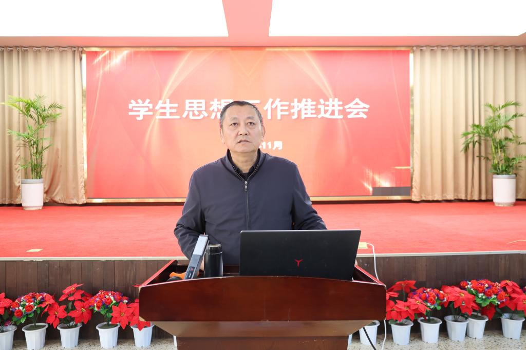 为深入贯彻落实立德树人根本任务,精准把握学生思想动态,交流推广有效工作经验,全面提升学工队伍管理与服务水平,11月3日下午,学校召开学生思想工作推进会。副校长黄友富出席会议并讲话。会议由学工处副处长、团委副书记李泽主持。