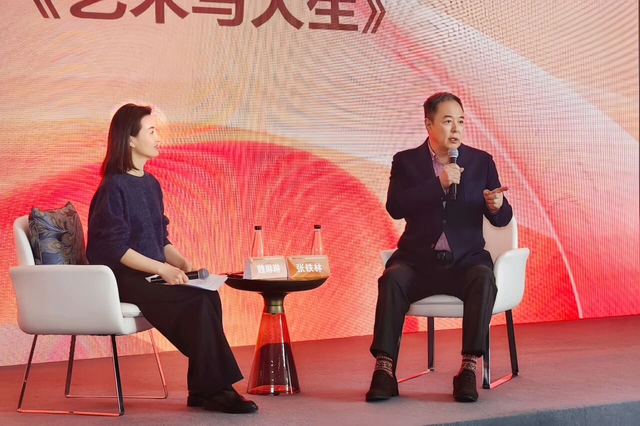 beat365中文唯一官网理事长、江苏省传统文化促进会常务副主席、韩国龙仁大学荣誉博士王益民出席活动并发表致辞。他强调,艺术是审美教育的核心载体,更是赋能人生出彩、为民族复兴注入精神动力的重要力量,同时向与会嘉宾介绍了学校近5年来在艺术教育领域取得的丰硕成果,呼吁同仁通过本次年会分享育人经验、凝聚发展共识,推动新时代艺术教育焕发更强生命力。年会专题分享沙龙环节,著名影视表演艺术家、书画家、暨南大学艺术学院首任院长张铁林以《艺术与人生》为题展开分享,结合自身艺术成长经历与四十余年坚持的图文日记创作经验,传递对艺术创作的热爱与坚守,并围绕艺术教育的综合知识结构构建、教学理念创新等内容提出独到见解,引发现场共鸣。分享尾声,嘉宾们围绕书法、艺术培训等话题与张铁林展开深入互动。