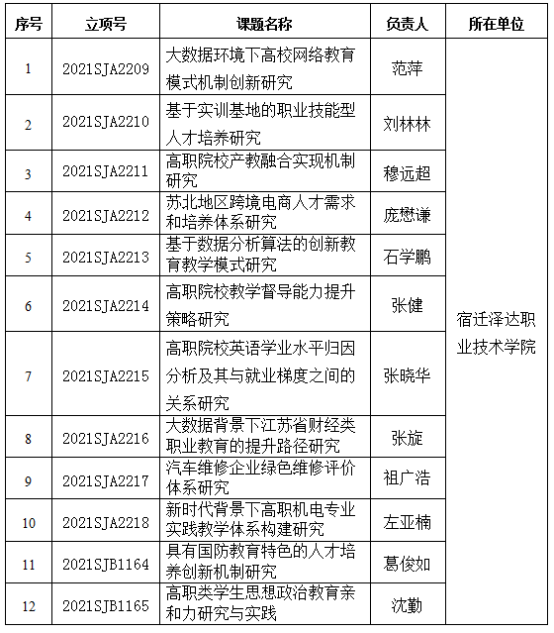 根据《省教育厅办公室关于公布2021年度高校哲学社会科学研究一般项目和专题项目的通知》(苏教办社政函〔2021〕37号)文件,2021年我院共有12个课题批准立项(名单见附件1)。