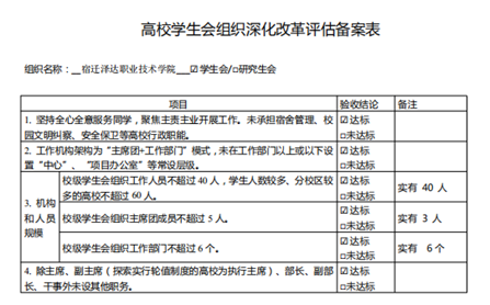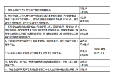 校、院学生会每年向校级评议会进行工作述职。评议结果纳入学校基层团组织团建工作考核指标。