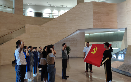 在参观活动中,全体人员首先来到朱瑞将军的雕塑像前,瞻仰朱瑞将军的光辉形像,并在将军的雕塑像前举行了庄严的党员入党誓词重温仪式。