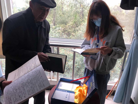 活动中,同学们热心地与老人们交谈,详细了解了他们的饮食、住宿及老人们的身体情况,并给老人带去了水果、牛奶等慰问品,使老人们深切感受到来自同学们的关心。同学们还了解到敬老院里的一位老爷爷年轻时是一位优秀的教师,他带同学们参观了书法室,讲解了一些书的故事,还让同学们看了他和他的学生合影,共同回忆青葱岁月。同学们的到来使平日里清净的敬老院此时处处洋溢着欢声笑语,平添一丝欢乐的氛围。