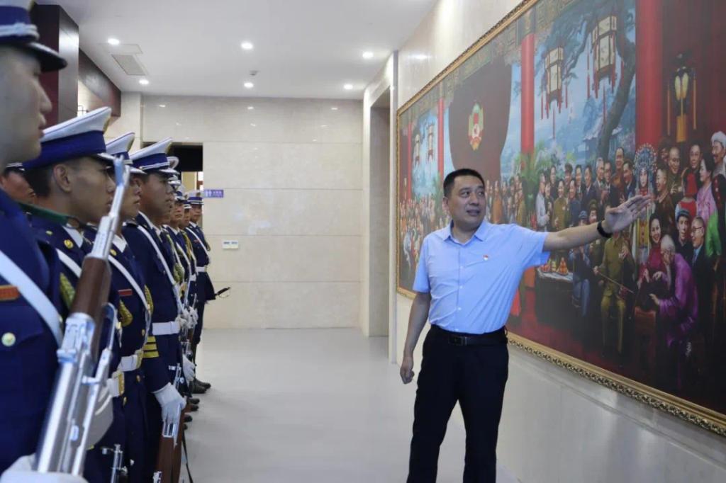 市政协机关党委领导带领国旗护卫队来到《初春》这副油画前,讲解这幅画的人物以及相关的历史事件,国旗国歌国徽的诞生历程,国旗护卫队队员们听得津津有味,更加全面地了解了新中国建立初期的历史事件。