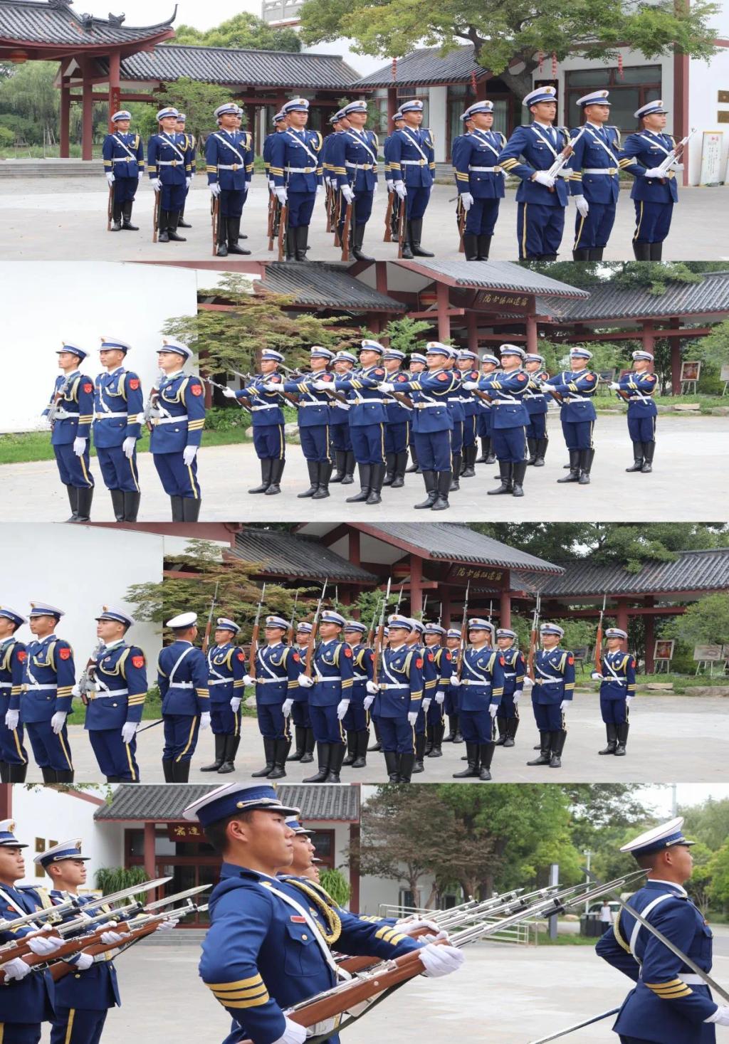 活动伊始,国旗护卫队在“和园”进行分列式和队列训练。
