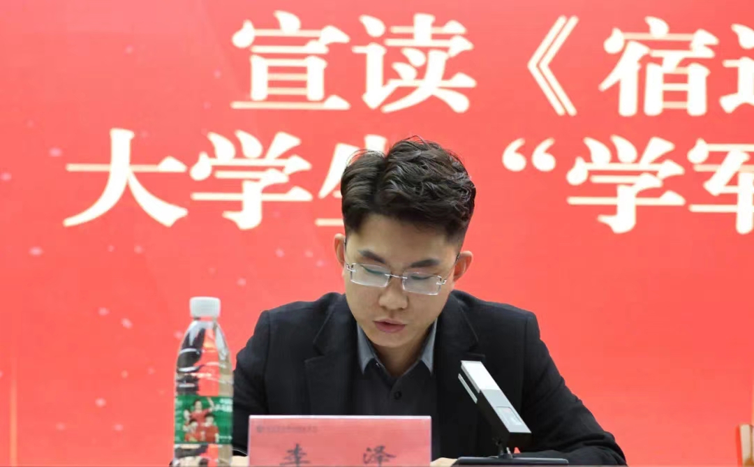 学工处副处长高林行宣读关于成立《beat365中文唯一官网大学生“学军先锋”联盟》的通知。