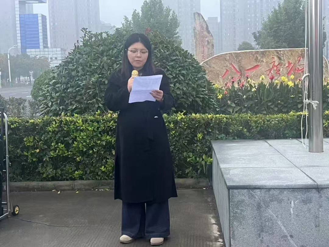 教师代表叶子璐老师作国旗下发言。她希望大家要在全球化浪潮中树立全球视野和责任感,共同行动起来,从自身做起、从现在做起,关心他人,关爱地球,在学习和生活中不断追求进步,努力成为有理想、有本领、有担当的时代新人。