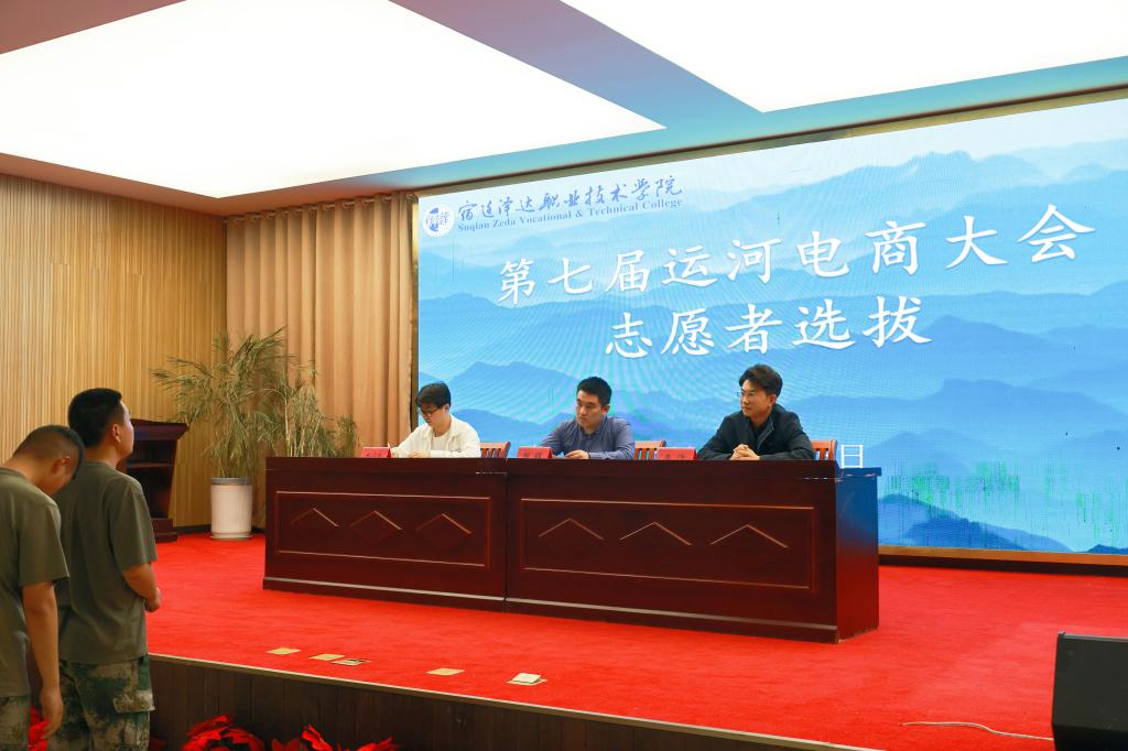 为确保高水准服务大会,在第七届运河电商大会组委会与共青团宿迁市委联合邀请下,beat365中文唯一官网团委启动了志愿者招募选拔工作。通过构建“线上+线下”立体化宣传矩阵,广泛动员覆盖全校各院系学生。经过两轮严格的综合面试考核,最终从500余名热情报名的学生中,精心遴选出50名综合素质过硬的同学组成志愿者团队。这支队伍以突出的能力、良好的形象气质和优秀的应变能力赢得了信任。