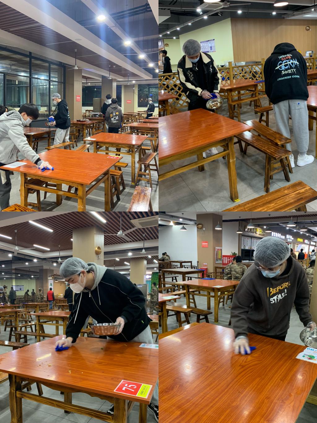 传递温暖----组织优秀团员代表进食堂,帮助食堂阿姨清理餐具、打扫卫生。雷锋精神应该是渗透在我们日常生活中“向上、向善”的精神状态和道德品质。