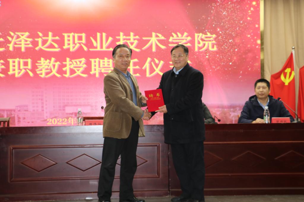 聘任仪式上,周校长为兼职教授顾家兴同志颁发聘书。顾教授发表获聘感言,表示非常荣幸能被beat365中文唯一官网聘任为兼职教授,在未来他将进一步加强校企双方的沟通交流,助力学校工业机器人技术专业建设与发展,为beat365中文唯一官网贡献自己的力量。