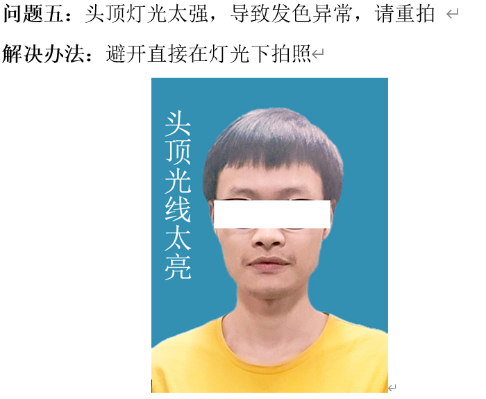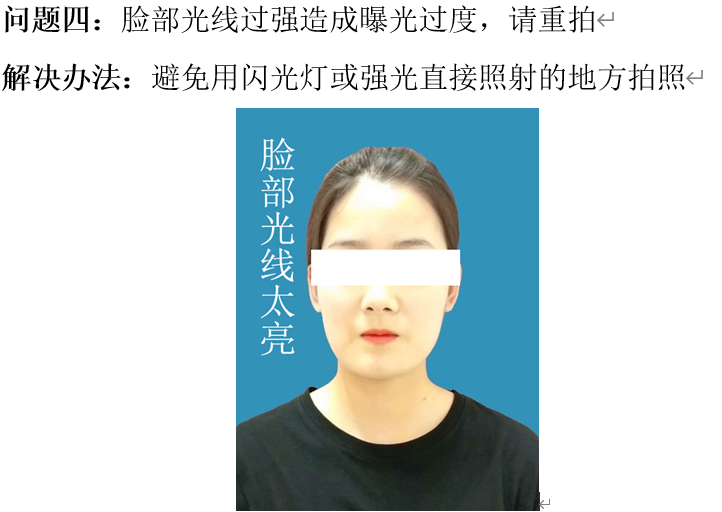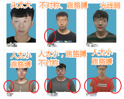 (3)其他原因。如头发遮住了耳朵、眉毛,或者佩戴了装饰品,又如翻拍了自己的纸质照片、拍照的时候眼睛看着别的方向了等。建议除去饰品、整理好头发按要求拍摄。