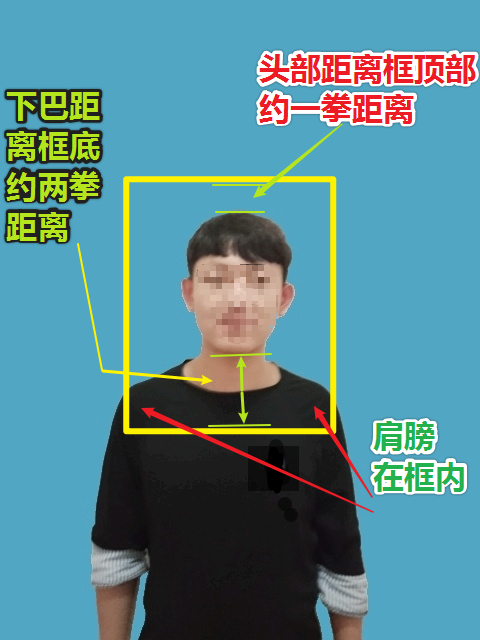 1)穿着的衣服不要和背景同色(也不要穿蓝色),头发不要遮住耳朵和眉毛;