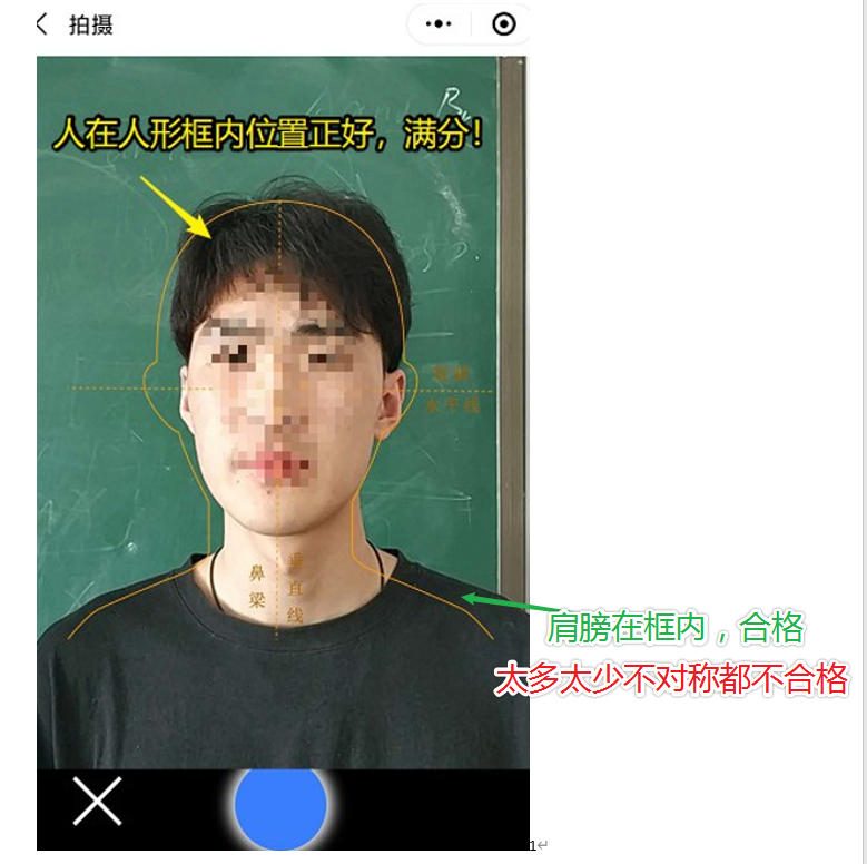 之后,按照小程序提示的人形框去拍照就可以了,如下图: