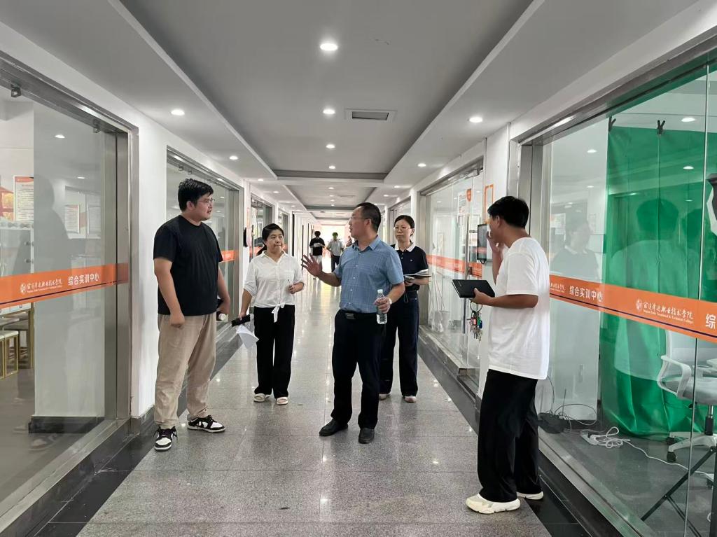 为切实保障新学期实践教学工作平稳有序开展,深入排查实训室安全风险隐患,全力营造安全、规范、稳定的实践教学环境,9月3日下午,闫志港副校长带队,教务处和安全稳定与后勤管理处相关人员以及各学院实训室管理人员组成检查组,对全校的实训室的环境及设备运行情况进行了检查。