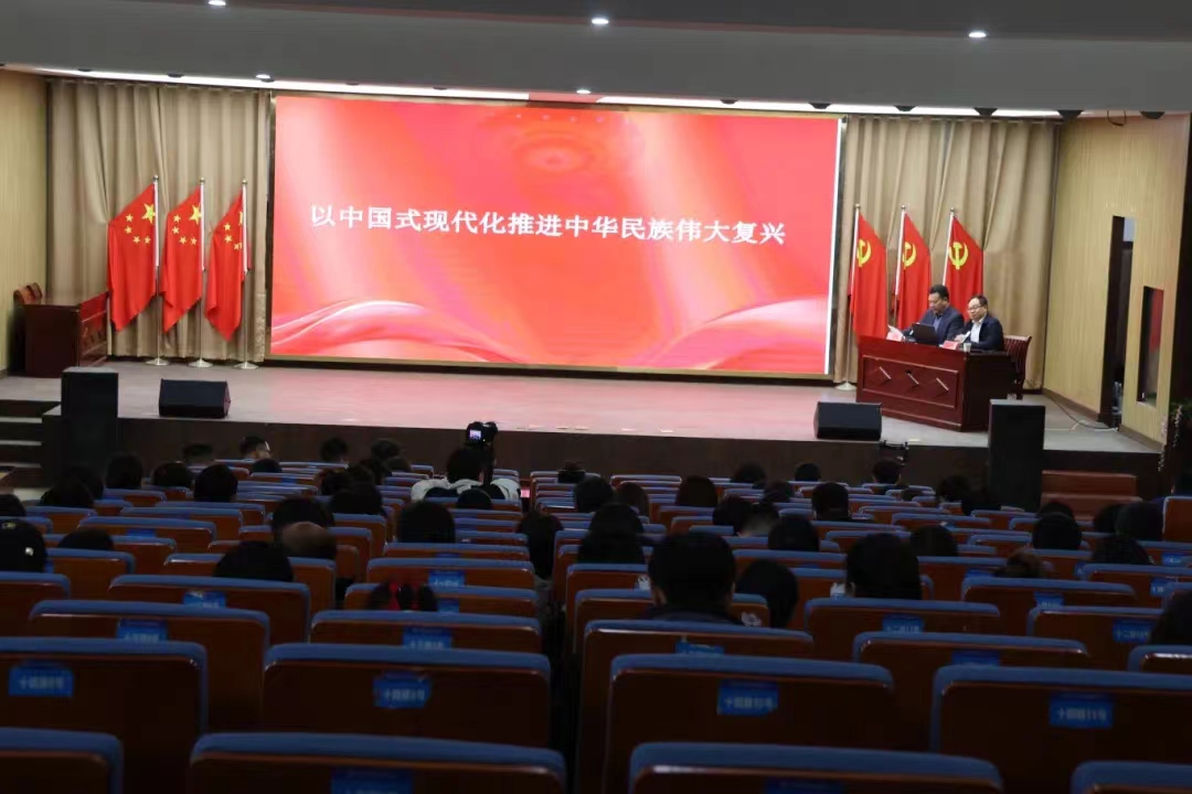 宿迁学院党委常委、宣传部部长、马克思主义学院教授,李明建博士为大家作专题宣讲。他围绕“以中国式现代化全面推进中华民族伟大复兴”为主题,从“辉煌历程”“继往开来”“数读报告”“伟大变革”“擘画蓝图”“开启新篇”等六个方面,对党的二十大精神作了全面宣讲和深入阐释。最后,他希望大家追随理想之光、担起学习之职、永怀崇德之心,踔厉奋发、勇毅前行。