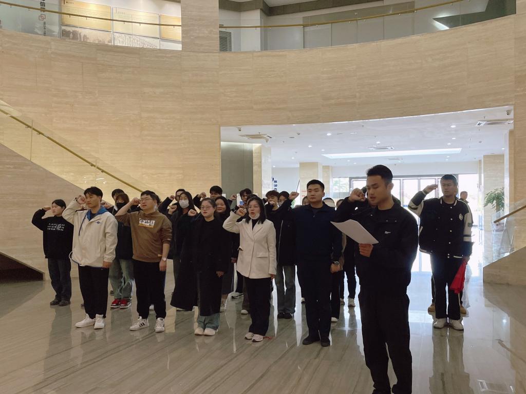 在朱瑞将军雕塑前,大家整齐列队,肃然起敬。建筑艺术学院徐焱教官带领大家一同回顾朱瑞将军生平英雄事迹,学习大无畏的革命精神,并深情地说:“我们今天的和平安宁,是革命先烈用生命和鲜血换来的。我们要铭记历史,缅怀英烈,更要珍惜今天的幸福生活,努力为祖国的繁荣发展贡献自己的力量。”随后全体师生集体默哀1分钟,怀着崇敬的心情向英烈雕像敬献花篮。团支部书记臧晗老师带领大家郑重宣誓,励志要发扬革命优良传统,铭记初心,在铿锵有力的誓言中汲取前行力量。