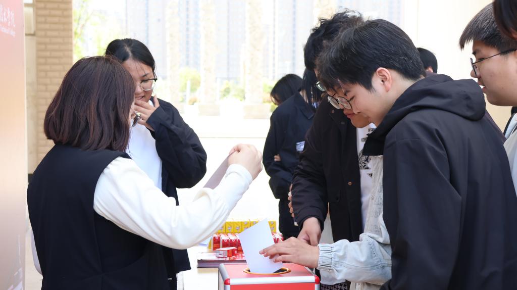 活动现场气氛热烈,260余名学生积极参与竞答,随机抽取题目作答并领取获奖小礼品和知识产权宣传材料。