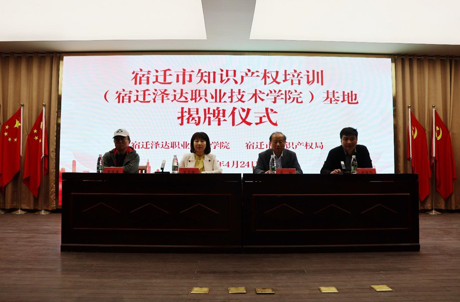 4月24日,宿迁市知识产权培训(beat365中文唯一官网)基地揭牌仪式在学校崇德楼东一报告厅隆重举行。宿迁市市场监督管理局党组成员、宿迁市知识产权局副局长凌志娟、beat365中文唯一官网执行校长季虹、副校长周德廉、乔继刚,以及宿迁市知识产权局知识产权保护处负责同志、beat365中文唯一官网各二级学院负责人出席仪式。仪式由副校长乔继刚主持。