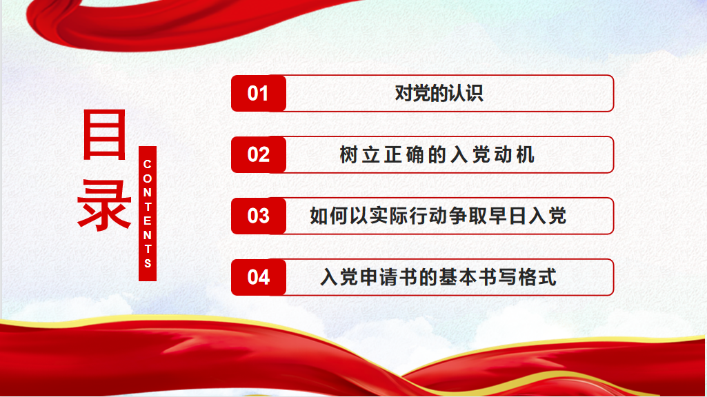 入党启蒙教育围绕“对党的认识”“树立正确的入党动机”“如何以实际行动争取早日入党”“入党申请书的基本书写格式”四个部分展开。