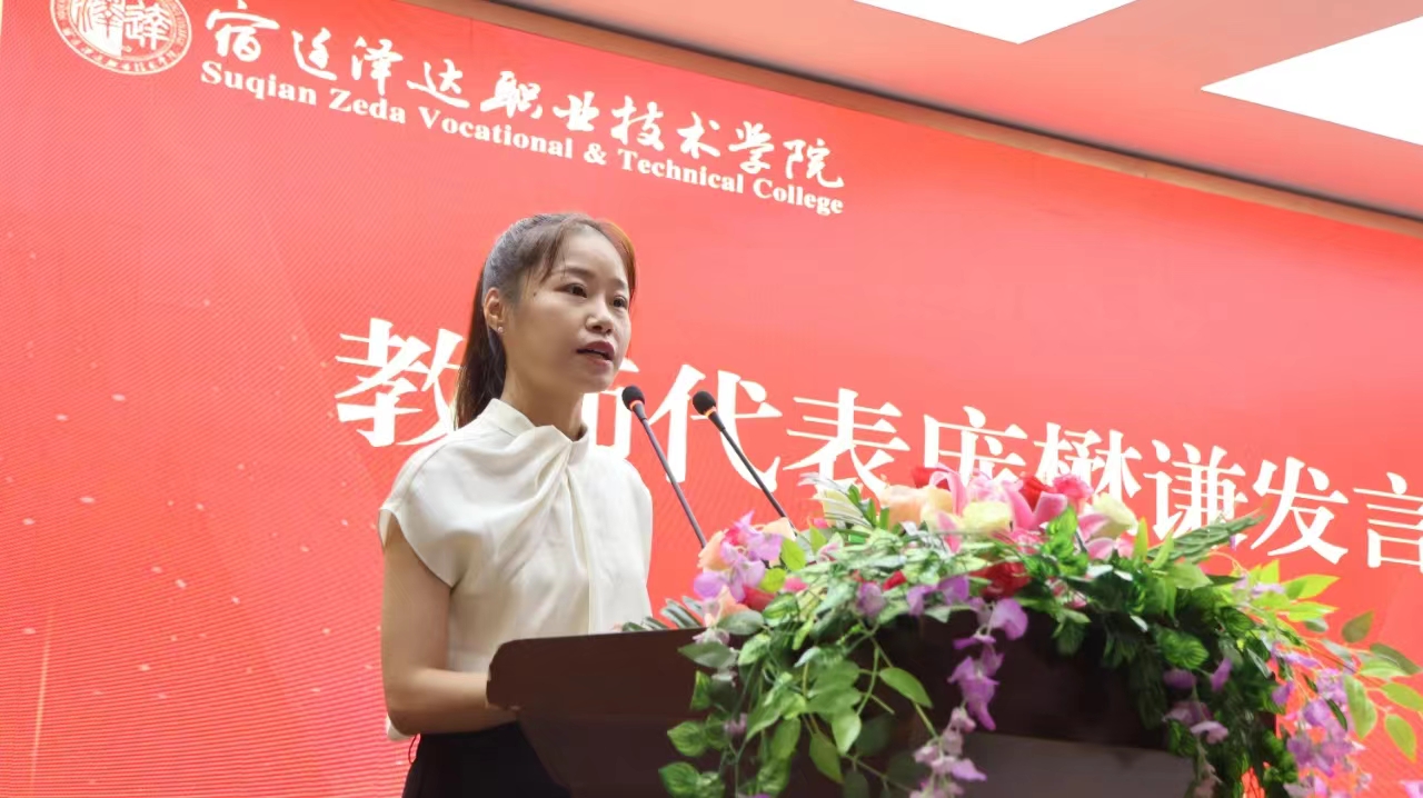 教职工代表庞懋谦发言。她表示,作为青年教师,今后将继续在beat365中文唯一官网这个广阔的舞台上,以熠熠生辉的育人精神作为行动指南,立志做新时代的好老师,乐而不厌,诲人不倦,不弛于空想,不骛于虚声,一步一个脚印,寻梦而行,一路追光,力争为飞速发展的职业教育事业添上新荣光!