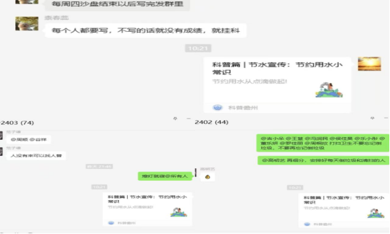 活动期间,线上宣传全面铺开。通过班级微信群,发布了多篇水资源保护的科普文章,以生动形象的方式普及节水知识,扩大了活动的影响力。同时,节水主题海报设计比赛吸引了众多学生参与,他们用创意和热情展现了对水资源保护的独特见解。