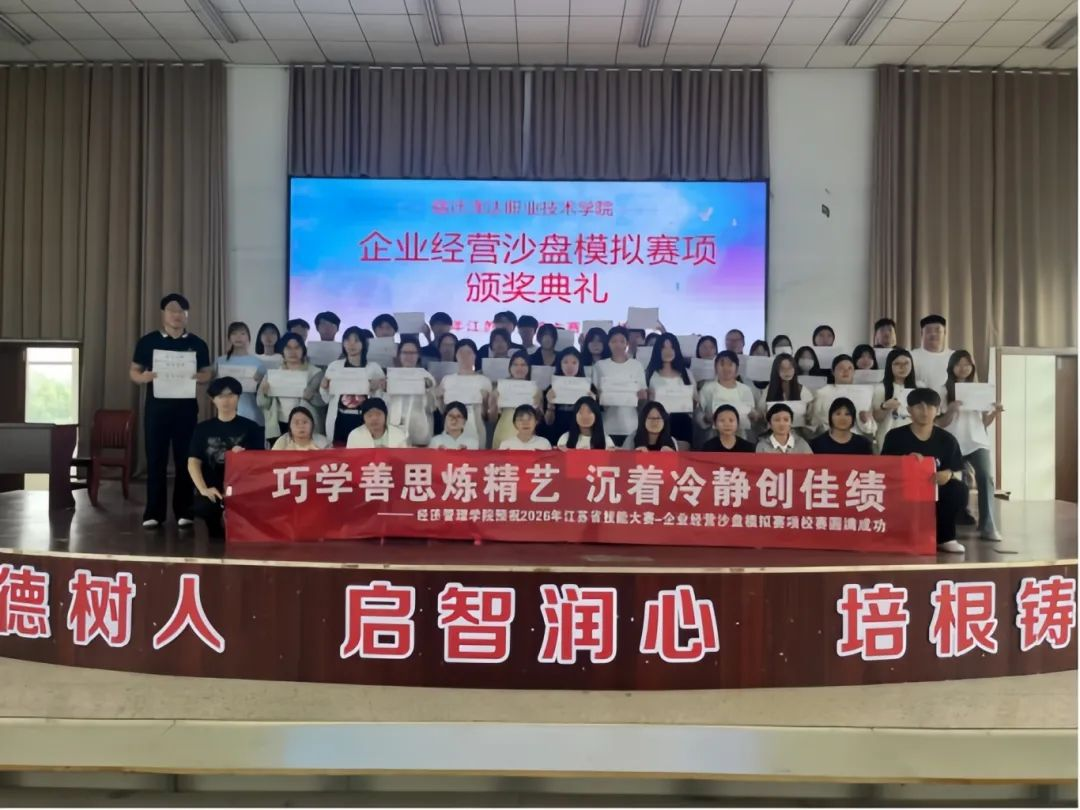 在2025 年江苏省职业院校技能大赛企业经营沙盘模拟赛项中,学院师生凭借扎实的专业技能与默契的团队协作,一举夺得三等奖;在第八届 “淮海职教杯” 创业大赛中,学院首次参赛便惊艳亮相,在创意模拟赛道市级选拔赛中勇夺第二名,决赛中更是揽获创意模拟赛项二等奖、创业创意赛项三等奖,充分展现出学院在创新创业教育领域的创新实践成果。