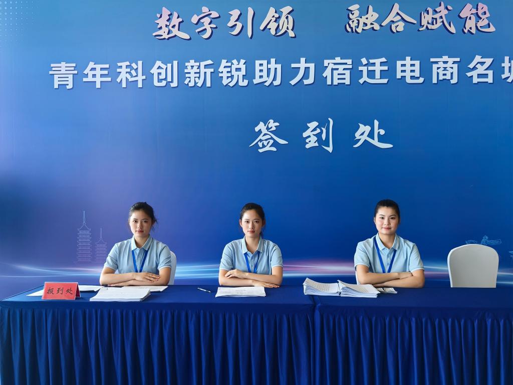 为确保高水准服务大会,在第七届运河电商大会组委会与共青团宿迁市委联合邀请下,beat365中文唯一官网团委启动了志愿者招募选拔工作。通过构建“线上+线下”立体化宣传矩阵,广泛动员覆盖全校各院系学生。经过两轮严格的综合面试考核,最终从500余名热情报名的学生中,精心遴选出50名综合素质过硬的同学组成志愿者团队。这支队伍以突出的能力、良好的形象气质和优秀的应变能力赢得了信任。