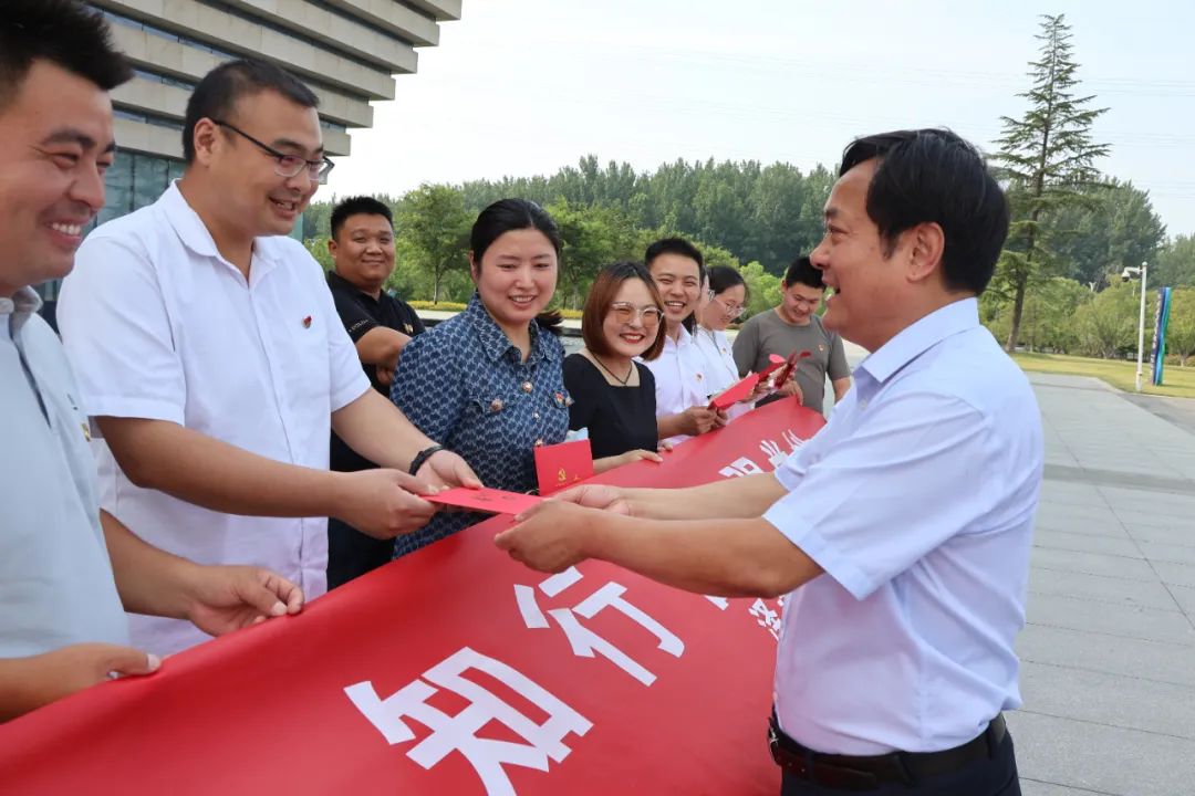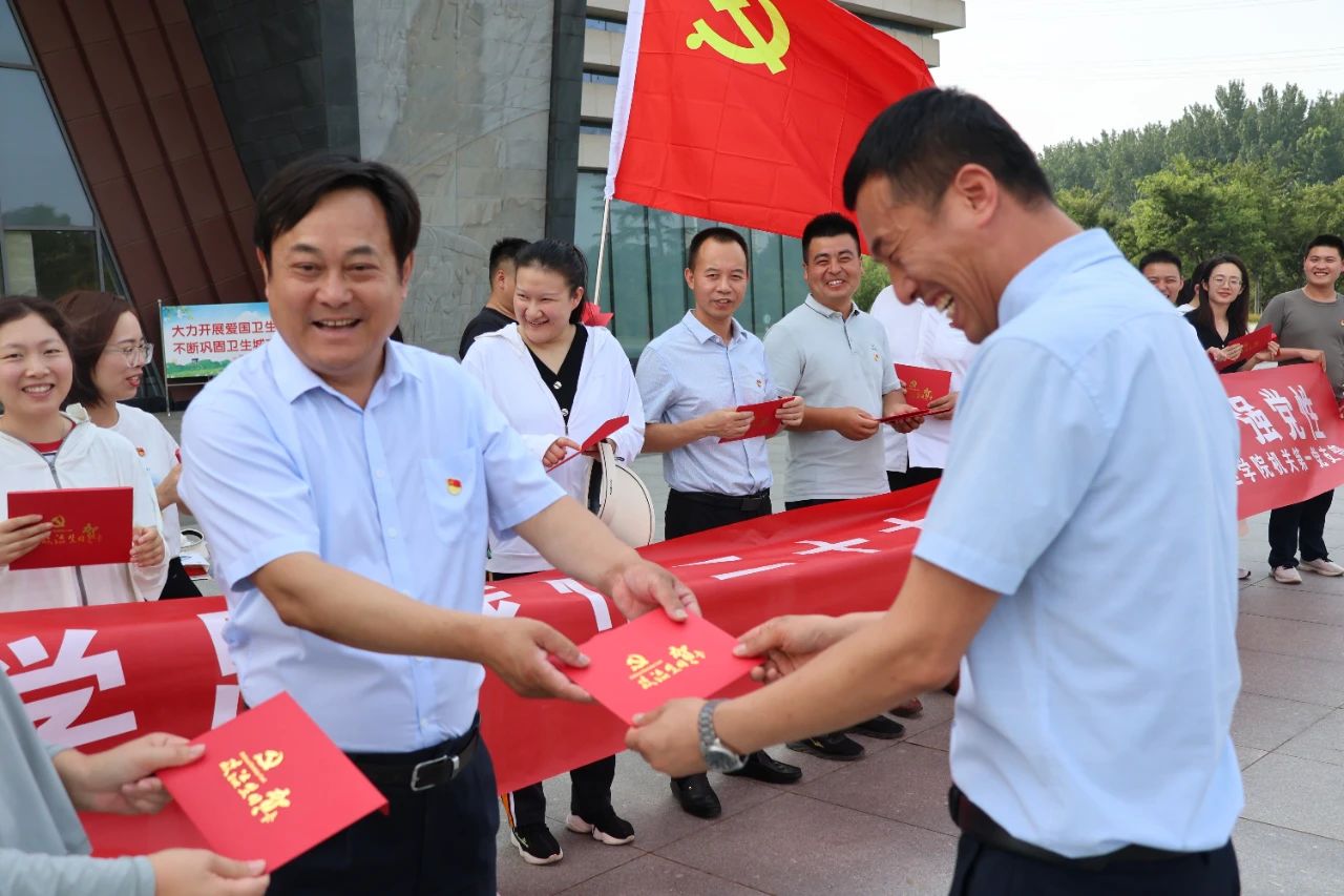 参观场馆前,学校党委书记汤成军为每个党员发放“政治生日”贺卡,筑牢初心使命,以实际行动践行誓言。