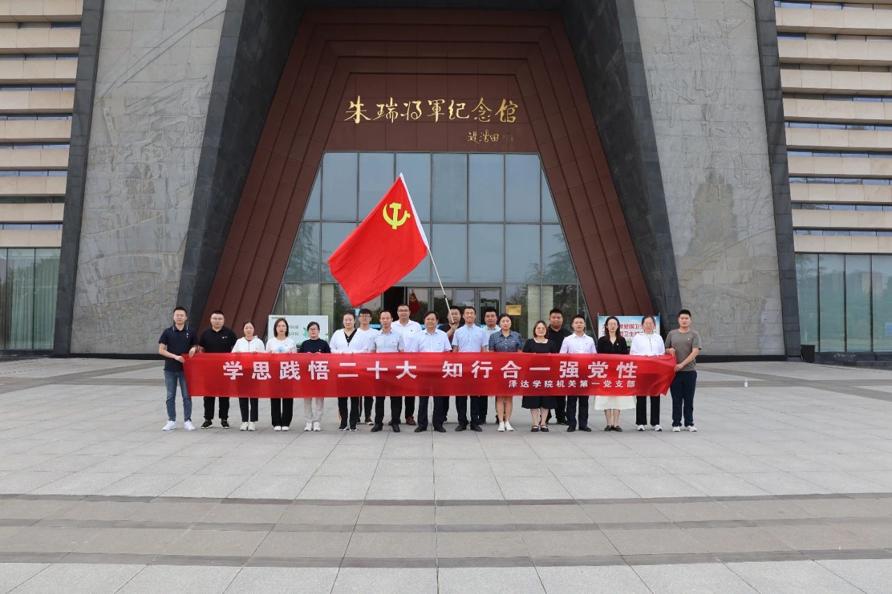 为深入学习贯彻习近平新时代中国特色社会主义思想,隆重庆祝建党102周年,重温党的光辉历史,继承和发扬党的光辉传统和优良作风,6月15日下午,学校机关第一党支部全体党员走进朱瑞将军纪念馆,开展“学思践悟二十大 知行合一强党性”主题党日活动。